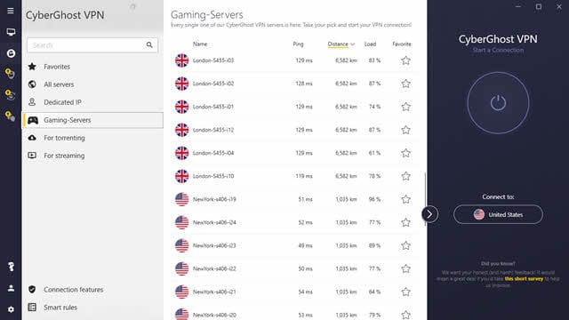 大多数服务器都是免费使用的,您可以随时单击标志并更改服务器。